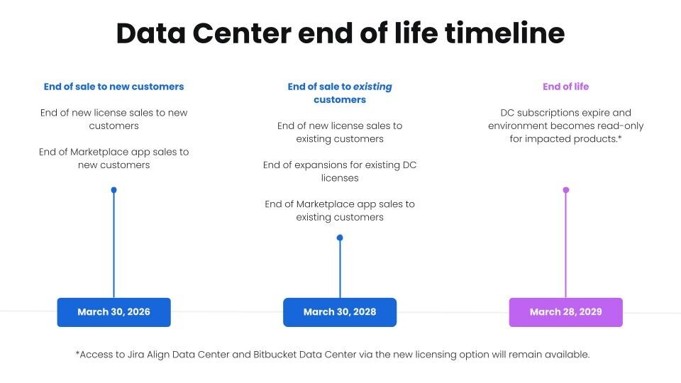 - March 28, 2029 – Atlassian Data Center reaches End of Life and support ends.